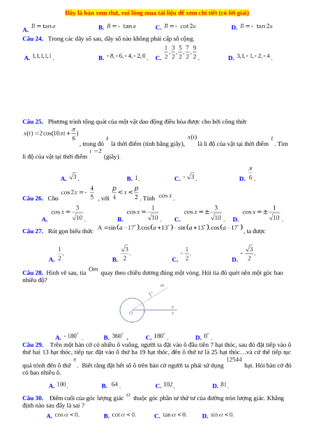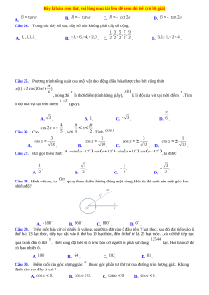 Câu 30. Điểm cuối của góc lượng giác thuộc góc phần tư thứ tư của đường tròn lượng giác. Khẳng