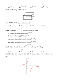 Chương I. Ứng dụng đạo hàm để khảo sát và vẽ đồ thị của hàm số Số lệnh hỏi 9 7 4 2 22 Số điểm 2,25 1,75 1,5 1 6,5 1, 2, 3, 4, 5, 6, 8, 9, 10, 11, 1d, 2d, Câu số/Phần 1a, 1b, 1c 2a, 2b, 2c 1, 2 4, 5 (I, II, III) I, II I, II II, III III Thành tố NL TD TD, QGVĐ GQVĐ MHH