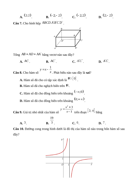 ĐỀ KIỂM TRA GIỮA HỌC KỲ I – MÔN TOÁN – LỚP 12 – BỘ SÁCH CÁNH DIỀU ĐỀ SỐ 1