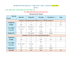 MA TRẬN ĐỀ KIỂM TRA GIỮA HỌC KÌ I