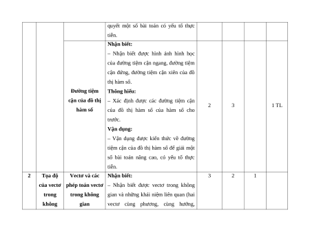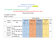MA TRẬN ĐỀ KIỂM TRA GIỮA HỌC KÌ I MÔN TOÁN – LỚP 12