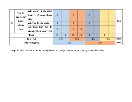 của các phép toán vectơ Tổng 15 0 15 1 4 1 1 1 Tỉ lệ (%) 30% 40% 18% 12% 100% Tỉ lệ chung (%) 70% 30% 100%