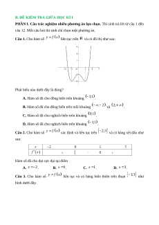 Chương I. Ứng dụng đạo hàm để khảo sát 10 8 4 hàm số Bài 1. Nhận Nhận biết 2 2 C1, C2 C1a, Tính biết được tính C1b đơn đơn điệu, điệu điểm cực trị, và cực giá trị cực trị trị của của hàm số hàm thông qua số bảng biến thiên hoặc thông qua hình ảnh của đồ thị Xét tính