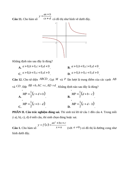 – Phần II gồm các câu hỏi ở dạng thức trắc nghiệm Đúng – Sai. Mỗi câu hỏi có 4 ý, tại mỗi ý thí sinh lựa chọn đúng hoặc sai.