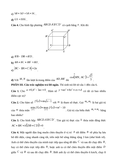 – Phần III gồm các câu trắc nghiệm trả lời ngắn. Mỗi câu trả lời đúng thí sinh được 0,5 điểm.