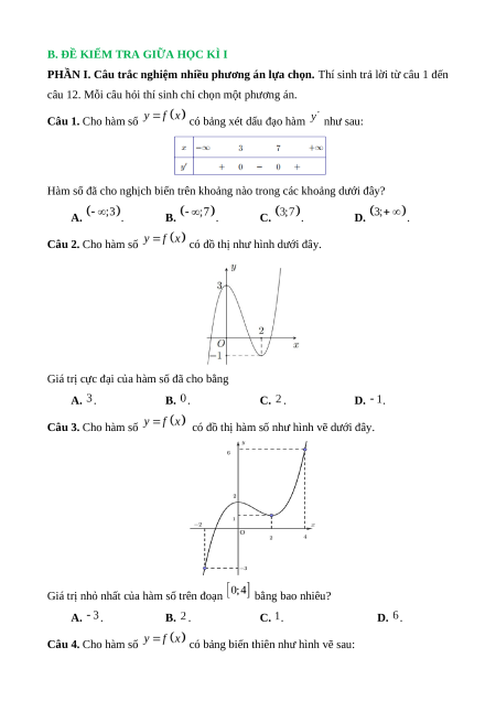 – Phần I gồm các câu hỏi ở dạng trắc nghiệm nhiều lựa chọn, trong 4 đáp án gợi ý chọn 1 đáp án đúng. Mỗi câu trả lời đúng được 0,25 điểm.