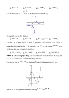 Chương I. Ứng dụng đạo hàm để khảo sát hàm số Số lệnh hỏi 7 7 4 1 19 Số điểm 1,75 1,75 1,5 0,5 5,5 1, 2, 3, 4, 8, 9, 10, 11, 1d, 2d, Câu số/Phần 1a, 1b, 1c 2a, 2b, 2c 1, 2 5 (I, II, III) I, II I, II II, III III Thành tố NL TD TD, QGVĐ GQVĐ MHH