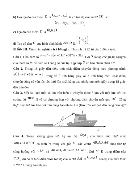 – Phần III gồm các câu trắc nghiệm trả lời ngắn. Mỗi câu trả lời đúng thí sinh được 0,5 điểm.