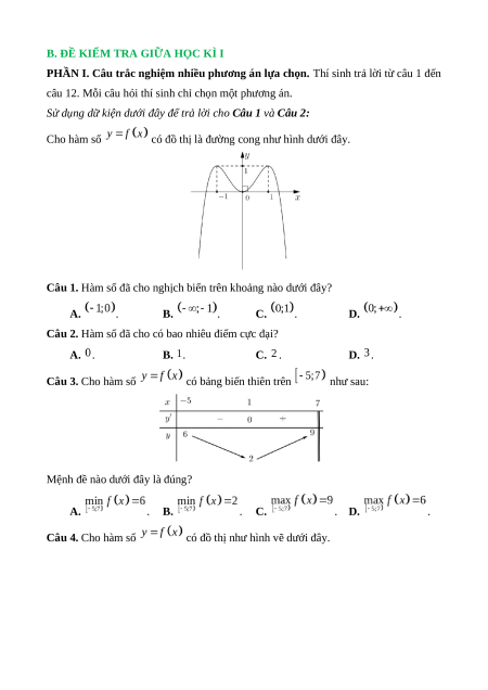– Phần I gồm các câu hỏi ở dạng trắc nghiệm nhiều lựa chọn, trong 4 đáp án gợi ý chọn 1 đáp án đúng. Mỗi câu trả lời đúng được 0,25 điểm.