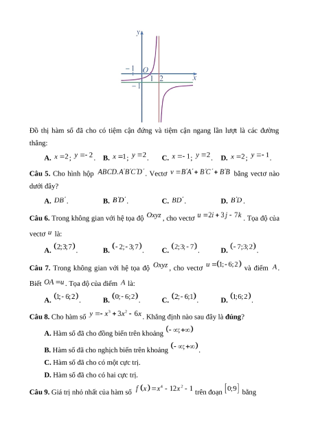 ĐỀ KIỂM TRA GIỮA HỌC KỲ I – MÔN TOÁN – LỚP 12 – BỘ SÁCH CHÂN TRỜI SÁNG TẠO ĐỀ SỐ 7