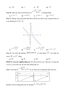 Chương I. Ứng dụng đạo hàm để khảo sát hàm số Số lệnh hỏi 7 7 4 1 19 Số điểm 1,75 1,75 1,5 0,5 5,5 1, 2, 3, 4, 8, 9, 10, 11, 1d, 2d, Câu số/Phần 1a, 1b, 1c 2a, 2b, 2c 1, 2 5 (I, II, III) I, II I, II II, III III Thành tố NL TD TD, QGVĐ GQVĐ MHH