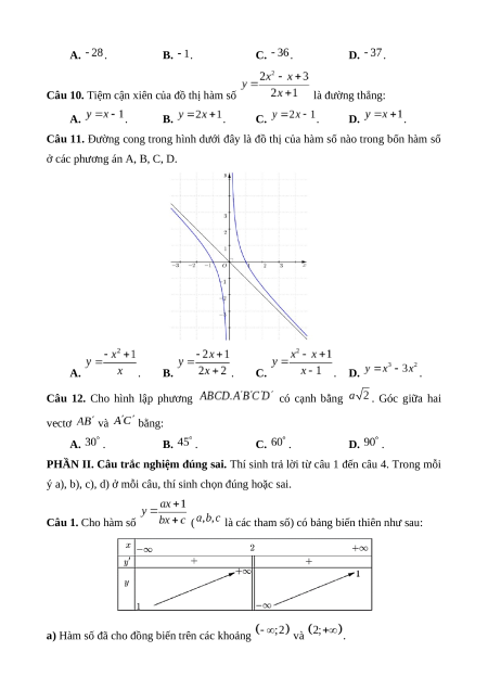 – Phần II gồm các câu hỏi ở dạng thức trắc nghiệm Đúng – Sai. Mỗi câu hỏi có 4 ý, tại mỗi ý thí sinh lựa chọn đúng hoặc sai.
