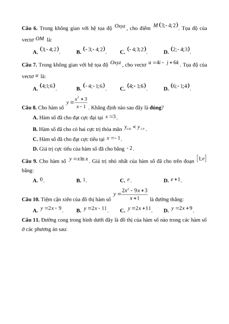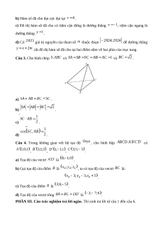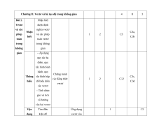 Chương II. Vectơ và hệ tọa độ trong không gian (Bài 1, Bài 2) Số lệnh hỏi 7 4 3 1 15 Số điểm 1,75 1 1,25 0,5 4,5 5, 6, 7, 12, 4d, Câu số/Phần 3a, 3b, 4a, 4b 3c, 3d, 4c 3, 4 6 (I, II, III) I, II I, II II, III III Thành tố NL TD QGVĐ GQVĐ MHH Tổng điểm 3,5 2,75 2,75 1,0 10 Lưu ý: