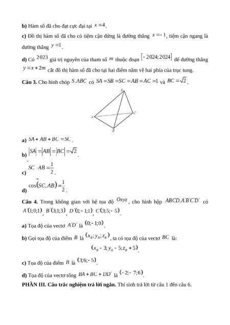 – Phần III gồm các câu trắc nghiệm trả lời ngắn. Mỗi câu trả lời đúng thí sinh được 0,5 điểm.