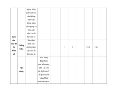 Chương I. Ứng dụng đạo hàm để khảo sát 8 8 3 hàm số Bài 1. Nhận Nhận biết 2 2 C1, C2 C1a, Tính biết được tính C1b đơn đơn điệu, điệu điểm cực trị, và cực giá trị cực trị trị của của hàm số hàm thông qua số bảng biến thiên hoặc thông qua hình ảnh của đồ thị Xét tính