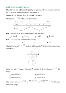 – Phần I gồm các câu hỏi ở dạng trắc nghiệm nhiều lựa chọn, trong 4 đáp án gợi ý chọn 1 đáp án đúng. Mỗi câu trả lời đúng được 0,25 điểm.