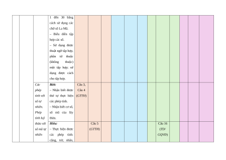 tự nhiên. – Nhận biết được Thứ tự thứ tự các số tự trong nhiên. tập hợp – Nhận biết kí các số hiệu thuộc, không tự nhiên thuộc. Hiểu: Câu 15 – Biểu diễn được (TD/ số tự nhiên trong GQVĐ) hệ thập phân. – Biểu diễn được các số tự nhiên từ