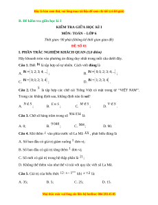 B. Đề kiểm tra giữa học kì I