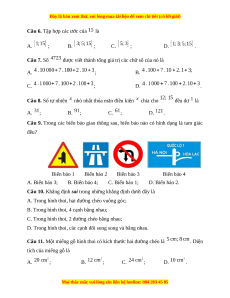 Câu 9. Trong các biển báo giao thông sau, biển báo nào có hình dạng là tam giác đều? Biển báo 1 Biển báo 2 Biển báo 3 Biển báo 4 A. Biển báo 3; B. Biển báo 4; C. Biển báo 1; D. Biển báo 2.