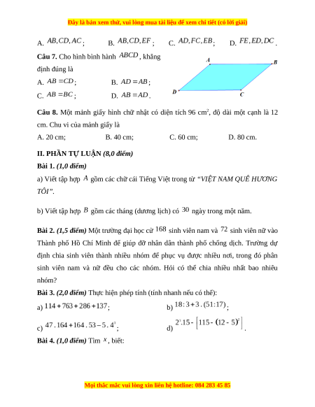 Chúng tôi đảm bảo đủ số lượng đề đã cam kết hoặc có thể nhiều hơn, tất cả có BẢN WORD, LỜI GIẢI CHI TIẾT và tải về dễ dàng.