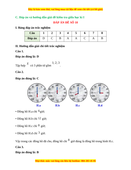 C. Đáp án và hướng dẫn giải đề kiểm tra giữa học kì I ĐÁP ÁN ĐỀ SỐ 10