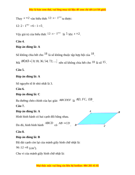 Câu 4. Trong các số sau số không chia hết cho là A. 15; B. 18; C. 36; D. 0.
