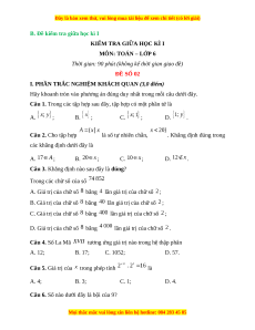 B. Đề kiểm tra giữa học kì I