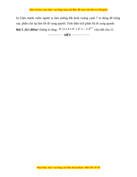 Bài 5. (0,5 điểm) Chứng tỏ rằng: chia hết cho 21.