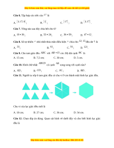Câu 7. Tổng nào sau đây chia hết cho 6? A. ; B. ; C. ; D. .