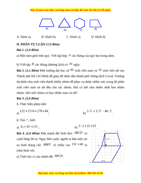 Chúng tôi đảm bảo đủ số lượng đề đã cam kết hoặc có thể nhiều hơn, tất cả có BẢN WORD, LỜI GIẢI CHI TIẾT và tải về dễ dàng.