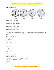 I. Bảng đáp án trắc nghiệm Câu 1 2 3 4 5 6 7 8 9 10 11 12 Đáp án D B A C C D A B A B A C