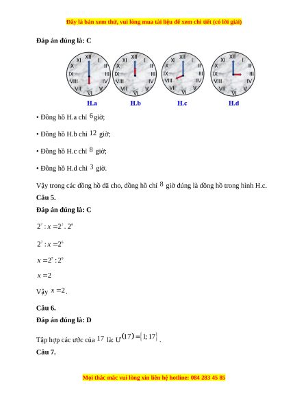 Câu 4. Trong các đồng hồ sau, đồng hồ chỉ giờ đúng là đồng hồ nào trong hình? A. H.a; B. H.b; C. H.c; D. H.d.