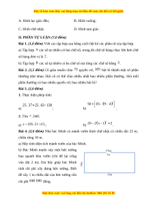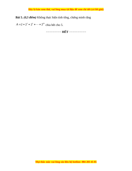 Bài 5. (0,5 điểm) Không thực hiện tính tổng, chứng minh rằng chia hết cho 5.