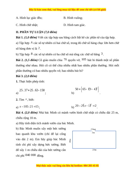 Bài 4. (2,0 điểm) Nhà bác Minh có mảnh vườn hình chữ nhật có chiều dài 25 m, chiều rộng 10 m.