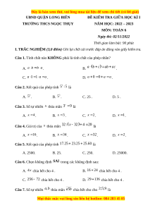 NĂM HỌC: 2022 – 2023 MÔN: TOÁN 6