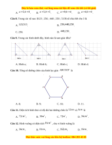 Câu 10. Tổng số đường chéo của hình lục giác là A. 8; B. 9; C. 10; D. 11.