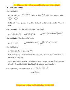Câu 5. (0,5 điểm) Tìm số tự nhiên để . -----HẾT-----