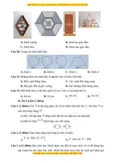 Câu 1: Cho tập hợp P các số tự nhiên không lớn hơn 6, cách viết nào sau đây đúng? A. . B. . C. . D. .