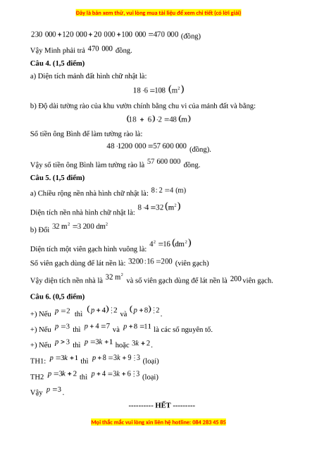 Câu 6. (0,5 điểm) Tìm số nguyên tố sao cho và