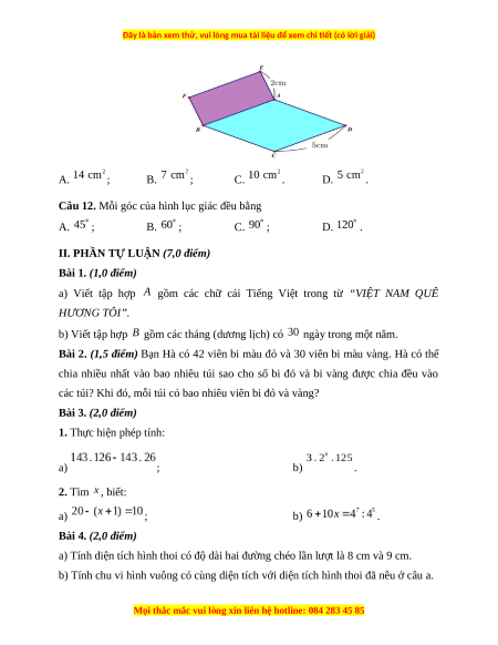 Câu 5. Kết quả của phép tính là A. ; B. ; C. ; D. .