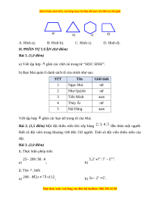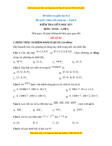 KIỂM TRA GIỮA HỌC KÌ I MÔN: TOÁN – LỚP 6