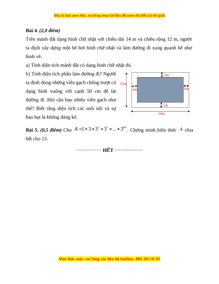 Trên mảnh đất dạng hình chữ nhật với chiều dài 14 m và chiều rộng 12 m, người