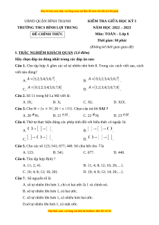 NĂM HỌC 2022 – 2023 ĐỀ CHÍNH THỨC Môn: TOÁN – Lớp 6