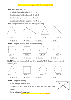 Câu 10. Trong các hình sau, hình nào là hình vuông? A. Hình 1. B. Hình 2. C. Hình 3. D. Hình 4.