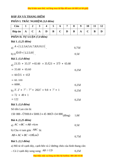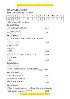 ĐÁP ÁN VÀ THANG ĐIỂM