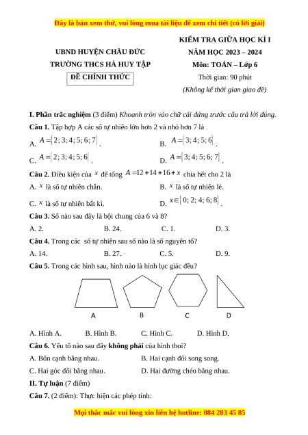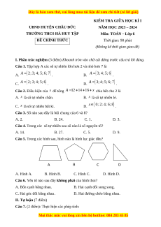 NĂM HỌC 2023 – 2024 ĐỀ CHÍNH THỨC Môn: TOÁN – Lớp 6