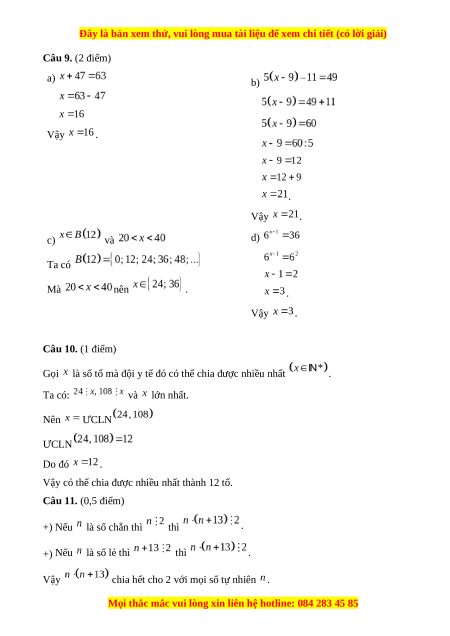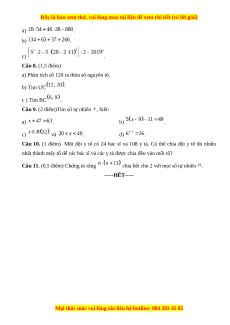 Câu 10. (1 điểm) Một đội y tế có 24 bác sĩ và 108 y tá. Có thể chia đội y tế đó nhiều