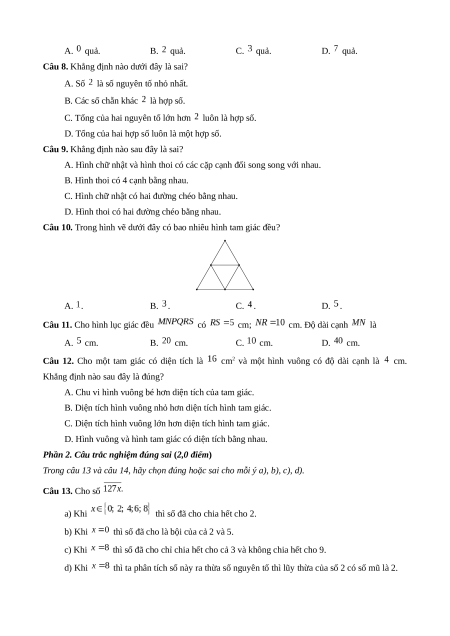 Câu 6. Trong các khẳng định sau, khẳng định nào là sai? A. Nếu thì B. Nếu thì C. Nếu thì D. Nếu thì Câu 7. Chia đều