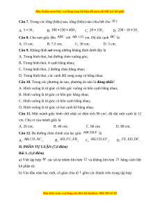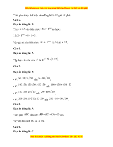 Câu 7. Trong các tổng (hiệu) sau, tổng (hiệu) nào chia hết cho ? A. ; B. ; C. ; D. .