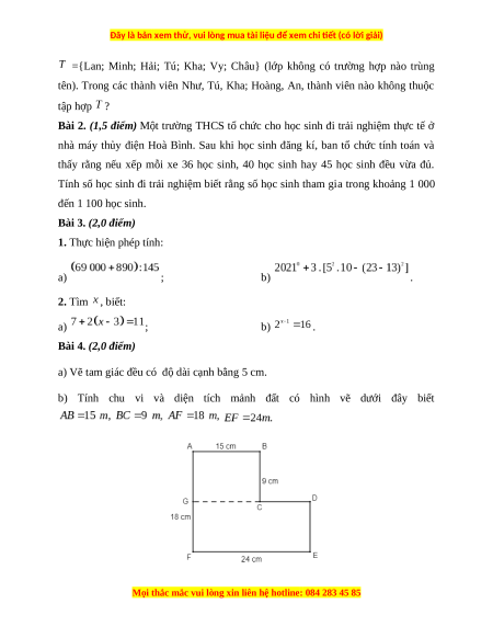 Bài 2. (1,5 điểm) Một trường THCS tổ chức cho học sinh đi trải nghiệm thực tế ở